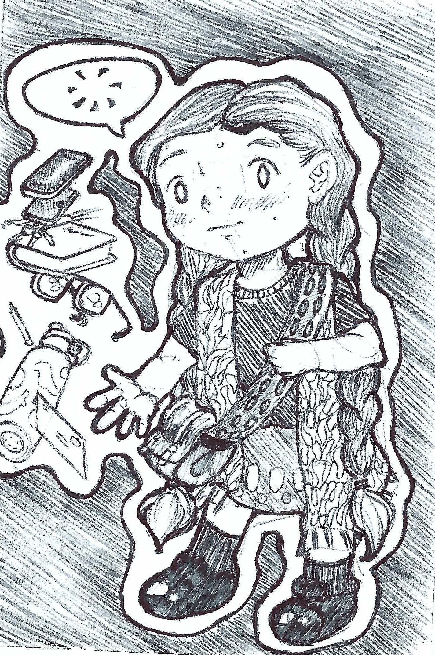 Sketch of octopus in bandit mask and cowboy hat with pistols