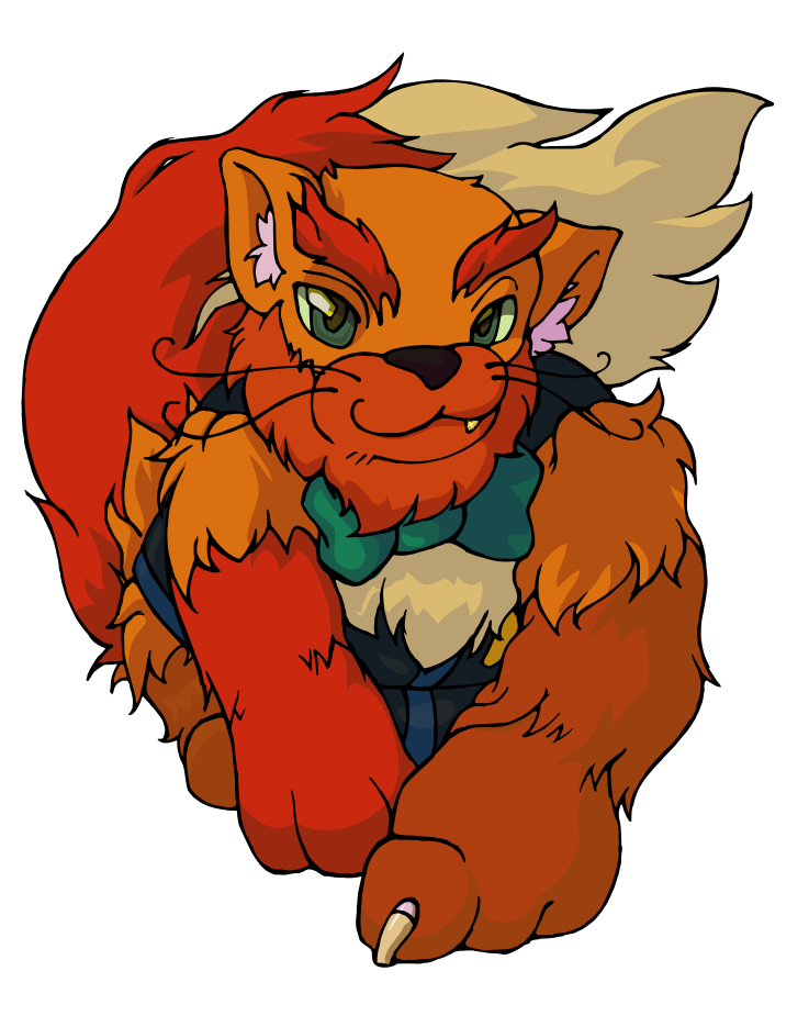 Digital art calico cat with gold tooth wearing vest and bowtie